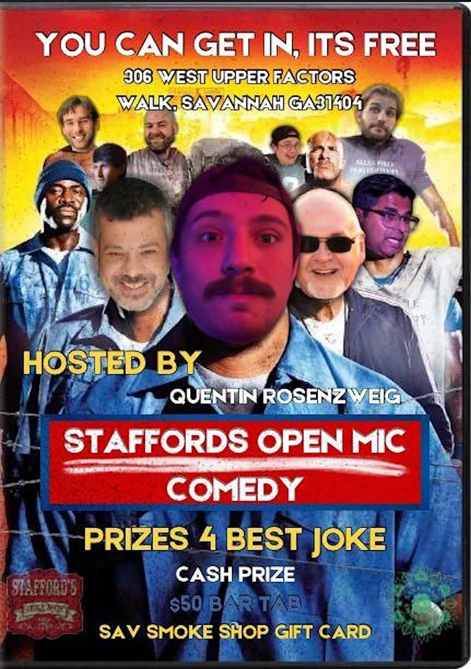 Staffordf’s Pub has thier weekly Comedy Open Mic starting at 830PM hosted by Quentin Rosenzweig. Steven Maxfield will be slinging your drinks all night long. Go show him love! $200 cash, $50 GC to Savannah Smokehouse & $50 bar tab to best joke!