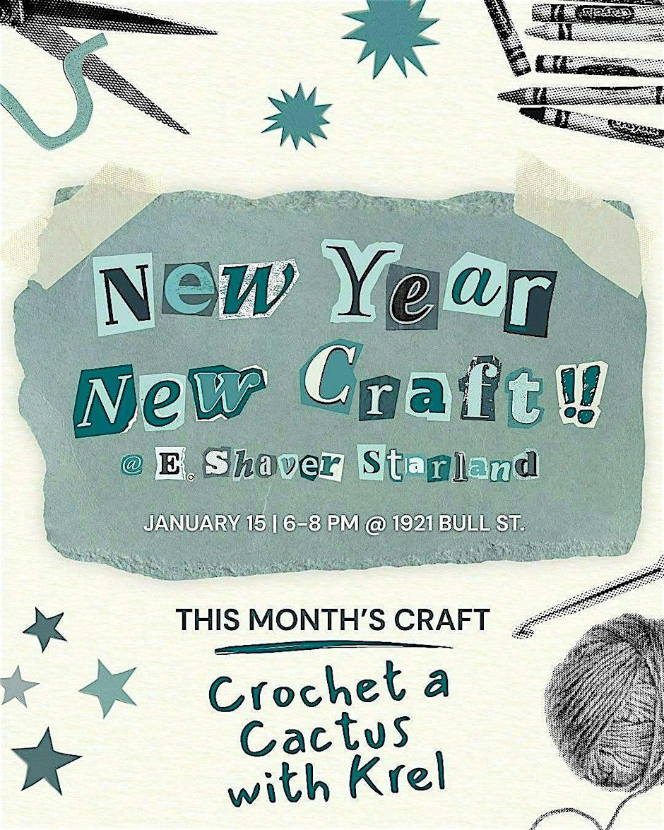 New Year, New Craft is a monthly creative workshop series at E. Shaver, Bookseller designed to help you try something new and make something by hand. Each month features a different craft led by a local artist or maker, welcoming beginners and curious creatives alike. Come learn a new skill, meet fellow makers, and leave with something you created yourself.
