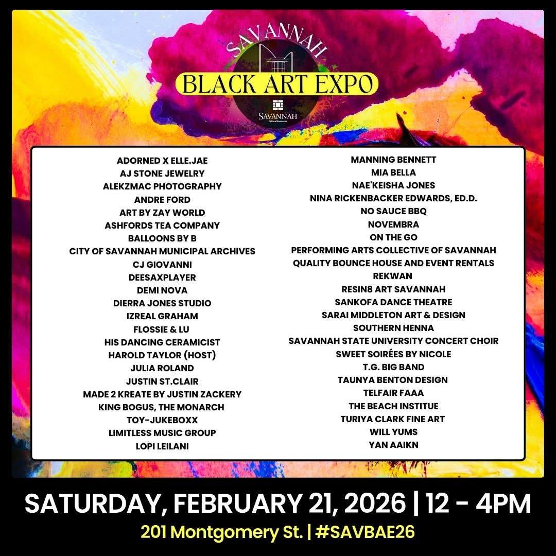 “At the heart of the Savannah Black Arts Expo is community.,” Hutchinson said. “This event is a cultural celebration rooted in Black art, cultural pride, and creative expression. The success of past years has shown us just how meaningful it is for artists to have a space where they can honor and live their culture through their work, while celebrating alongside other like-minded creatives. As always, we look forward to welcoming the Savannah community into our arts center to shop with local artists across a variety of mediums, experience incredible performances, and enjoy delicious food and beverages from local vendors.”